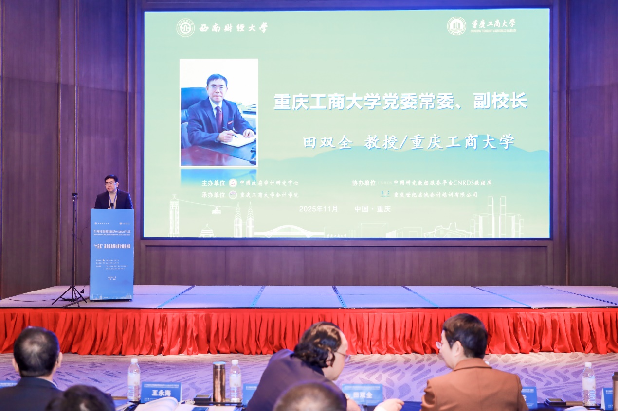 2025年11月21日-22日,由中国政府审计研究中心主办、重庆工商大学会计学院承办的“第十四届审计理论创新发展论坛暨CCGAR2025年学术会议”以线下线上相结合的方式在重庆召开。重庆工商大学党委常委、副校长田双全,审计署审计科研所所长、中国审计学会副会长兼秘书长刘力云,中国政府审计研究中心主任蔡春等出席开幕式并致辞。来自全国200余所高校、企事业单位的知名专家、学者和师生代表700余人参加会议。