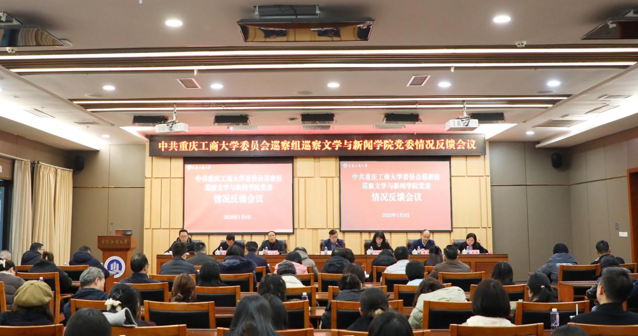 2026年1月9日下午,学校第四届党委第六轮巡察文学与新闻学院党委情况反馈会在图书馆第一会议室召开。党委书记、巡察工作领导小组组长曾维伦出席并作讲话,党委常委、纪委书记、重庆市监委驻学校监察专员、巡察工作领导小组副组长张海燕出席,文学与新闻学院党委书记潘焱主持会议并作表态发言。