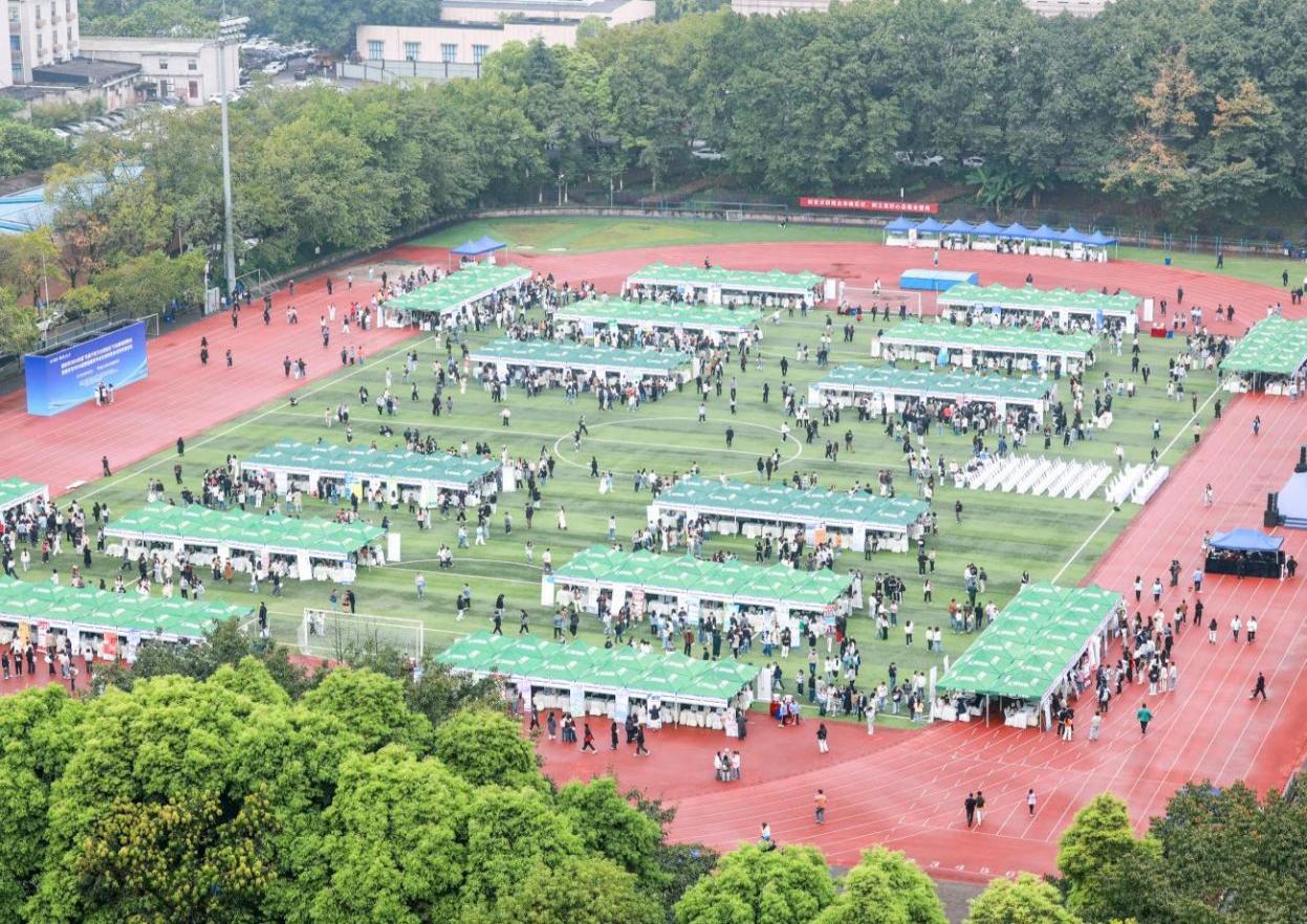 启动仪式结束后,与会领导到招聘会现场巡展。本次招聘活动共邀约400家企业进校现场招聘,其中“33618”现代制造业集群企业144家,财经商贸类企业110家,覆盖先进制造、数字经济、现代服务、商贸物流、生物医药等多个重点领域,包括赛力斯集团、宗申集团、威马农机、华森制药、厦门银行、平安银行、国信证券等知名企业,提供就业岗位1.2万余个,共吸引市内4000余名毕业生现场参会。