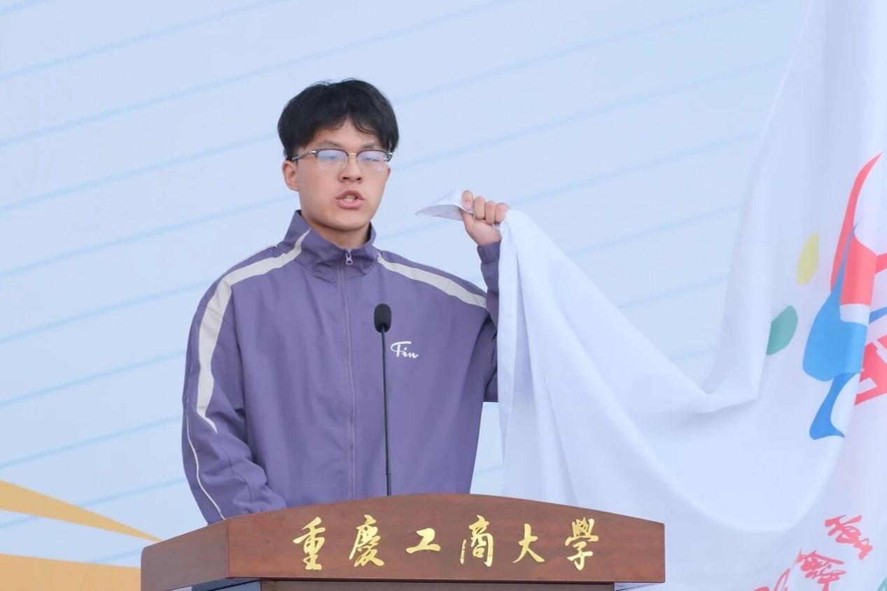 食品科学与工程学院邓秋玉、体育学院教师王珊分别作为裁判员和运动员代表庄严宣誓,承诺以公平公正的态度和拼搏进取的精神参与赛事。