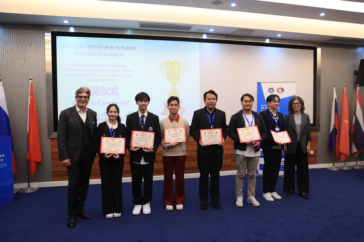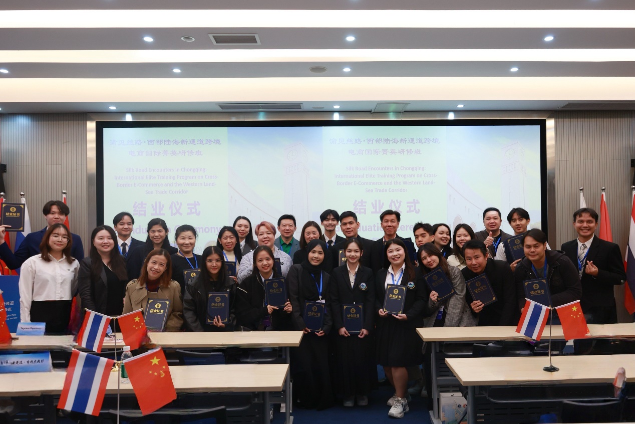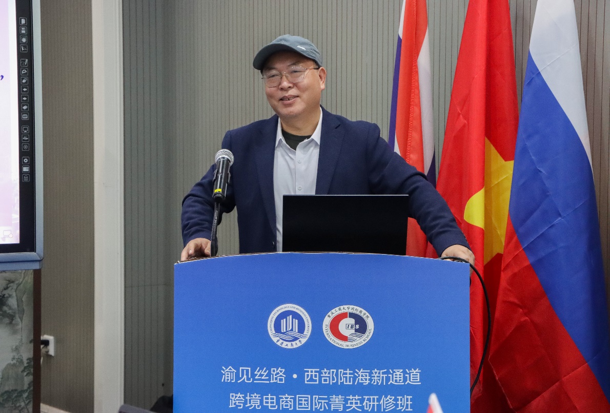 2025年11月7日上午,“渝见丝路・西部陆海新通道跨境电商国际菁英研修班”结业典礼在重庆工商大学图书馆南楼S116顺利举行。本次研修班由重庆工商大学主办,重庆工商大学国际商学院、重庆工商大学国际交流与合作处、重庆两江科技创新战略研究院、重庆市电子商务协会、重庆市商贸物流商会、重庆市物流与供应链教育专委会联合承办,历经5天的系统学习与实践交流,来自泰国、俄罗斯、越南等“一带一路”沿线国家的30余名学员顺利结业。结业典礼由重庆工商大学国际商学院院长助理黎红主持。