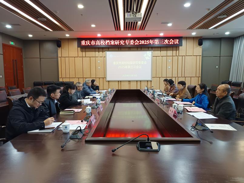 11月19日下午,重庆市高等教育学会高校档案研究专业委员会第四届常务理事会2025年第三次会议在我校图书馆第五会议室召开。重庆市教育委员会副研究馆员王静、重庆大学档案馆副馆长喻玲,以及来自全市10余所高校的常务理事单位代表齐聚一堂,共商发展。会议由重庆大学档案馆副馆长喻玲主持。