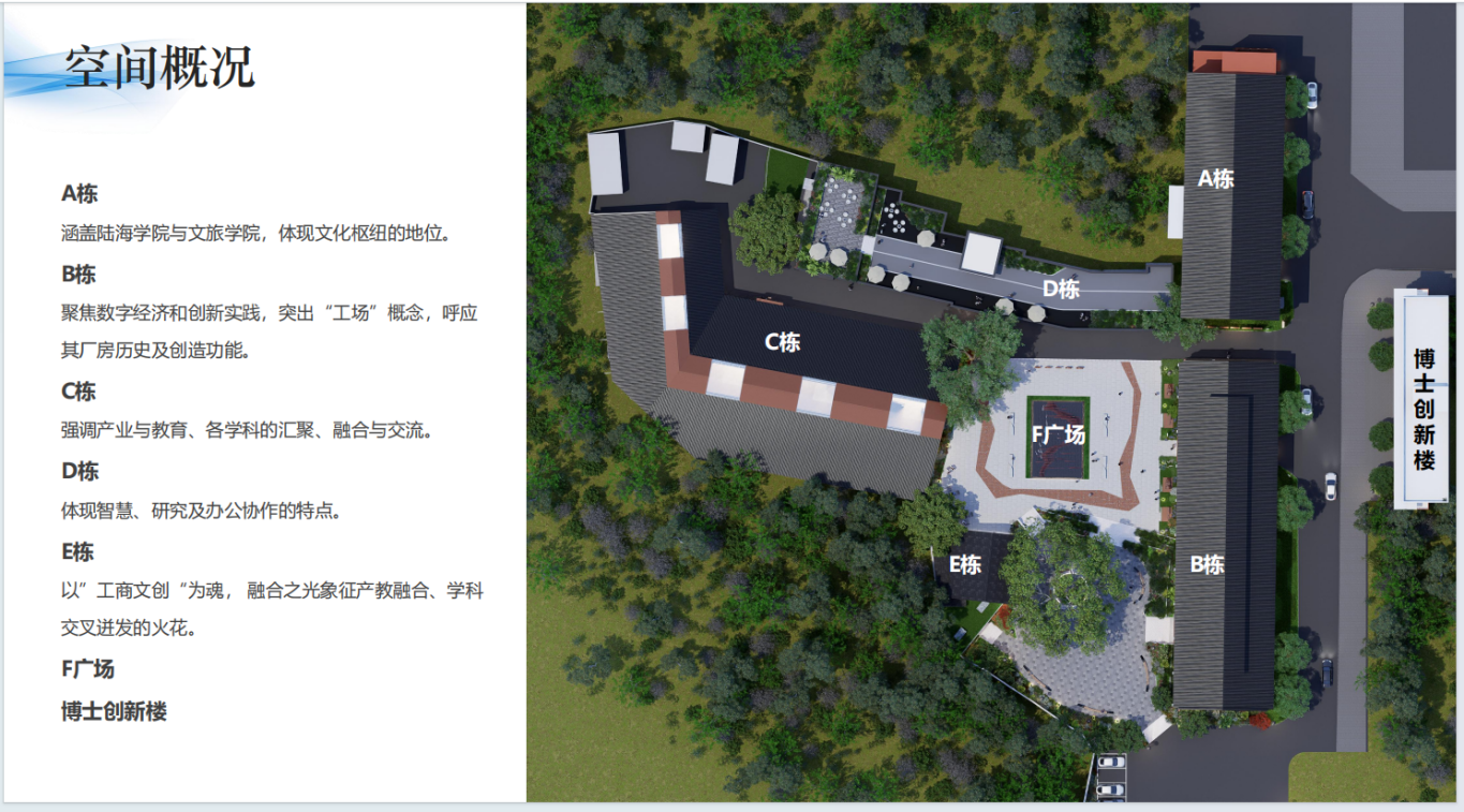 强调产业与教育、多学科交汇融合:包含开放式学科竞赛交流空间、实验教室、小型讨论室、企业办公位及碳金融与绿色发展特色项目展示区。