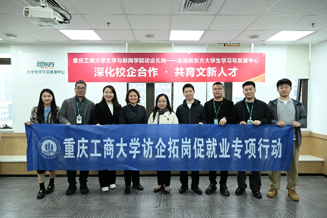 为深入贯彻落实访企拓岗促就业专项行动,进一步深化产教融合、拓宽毕业生就业渠道,3月17日下午,文学与新闻学院党委书记潘焱、2026届就业联络员李琦、2023级辅导员孔海啸一行前往重庆新东方大学生学习与发展中心,开展访企拓岗专项行动。