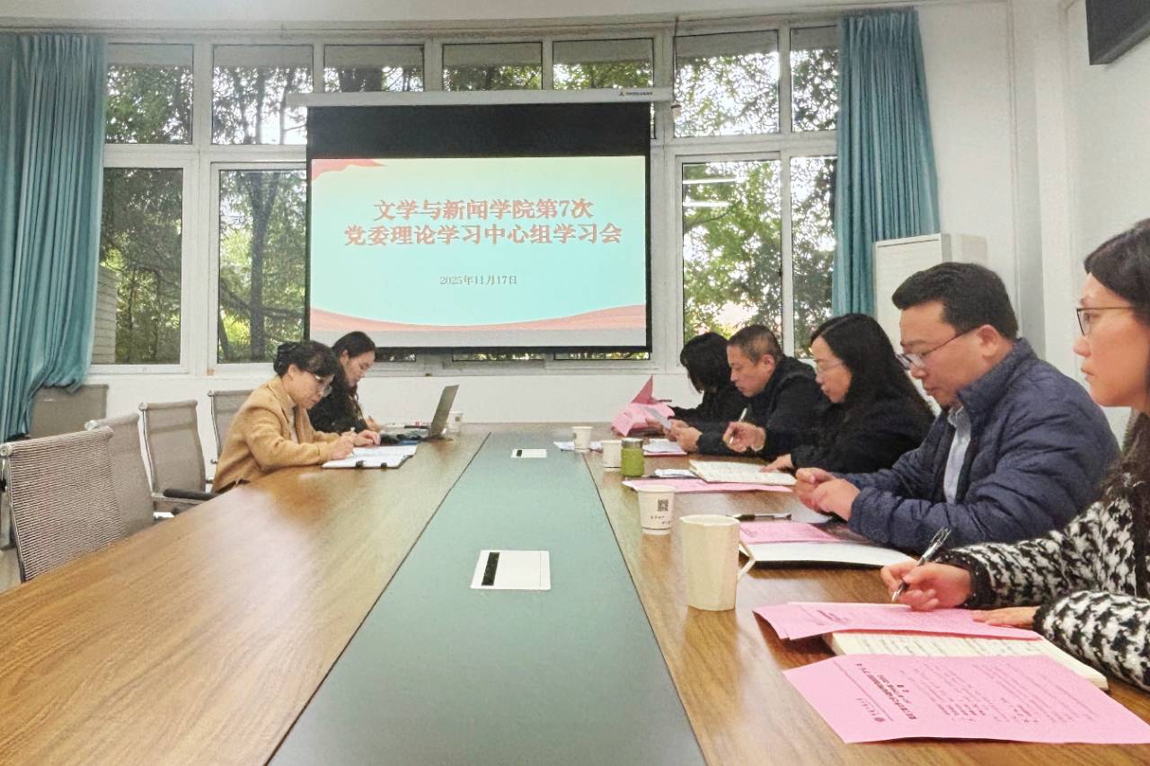 11月17日,文学与新闻学院召开党委理论学习中心组第7次集体学习会,围绕“深入学习贯彻党的二十届四中全会精神”主题开展学习交流。学习会由学院党委书记潘焱主持,学院党委理论学习中心组学习成员参会。